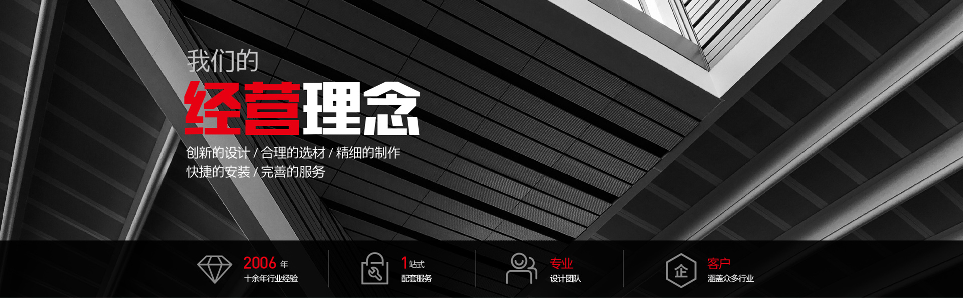 誠信是我們賴以生存的根本。創(chuàng)新的設計,合理的選材,精細的制作,快捷的安裝,完善的服務是我們也就不變的經營理念。我們竭誠為您提供中******,個性化,創(chuàng)意性的作品,我們不斷進取,努力今天的同時也在發(fā)展未來,期待與您結成事業(yè)上的好伙伴,共圖發(fā)展!